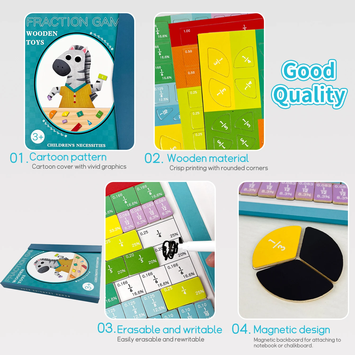 Wooden Fraction Learning Game Set – Educational Math Toy for Kids