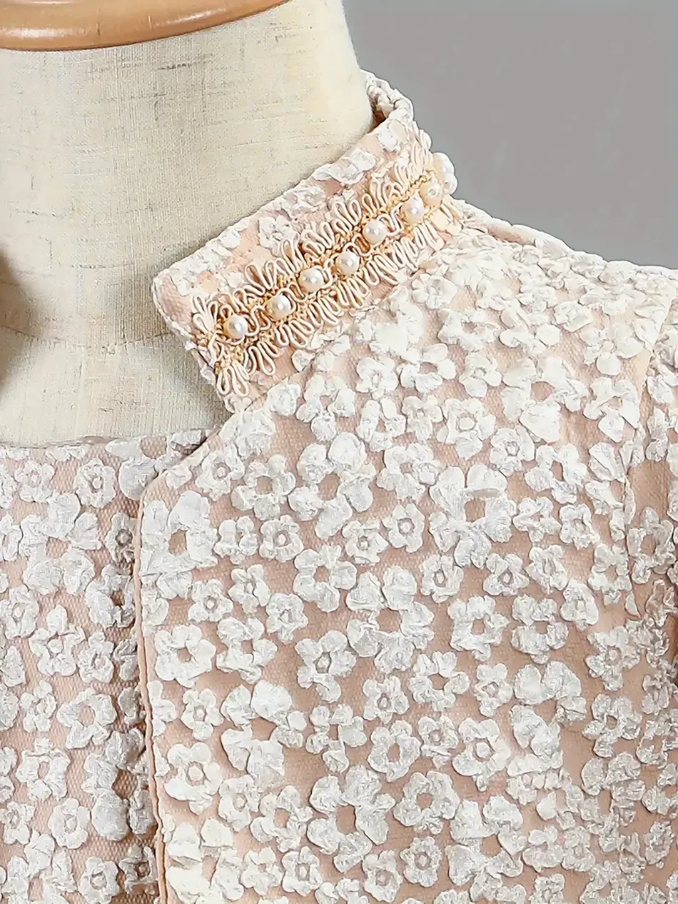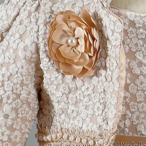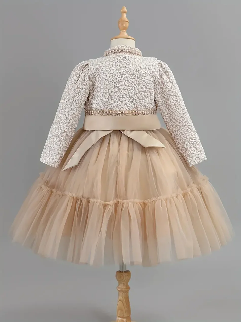 Two‑piece spring/autumn outfit for girls (ages 2–4) featuring a khaki lotus‑lace dress paired with a matching coat. It’s designed as a cute, princess‑style ensemble with a soft, elegant look.