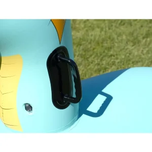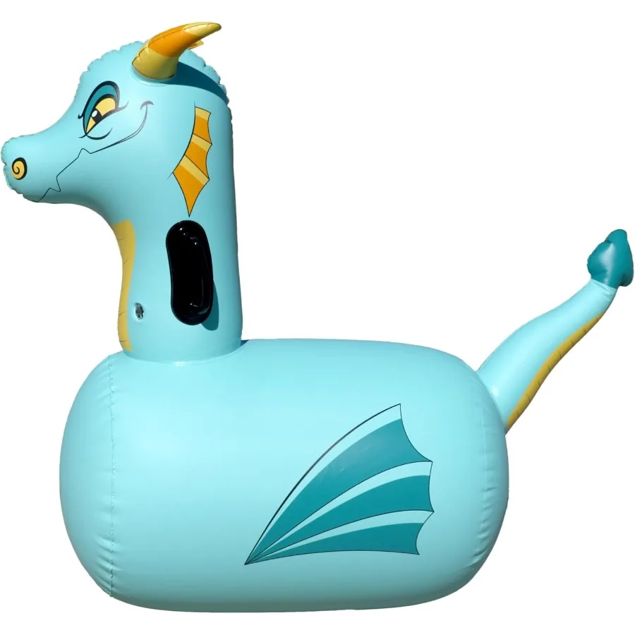This adorable inflatable dragon bouncer is a fun and exciting ride-on toy designed to keep kids active and entertained. Made from durable inflatable material, it features a bright blue dragon design with playful details like horns, wings, and a friendly smiling face. The sturdy side handles allow children to hold on securely while bouncing, making playtime both safe and thrilling.